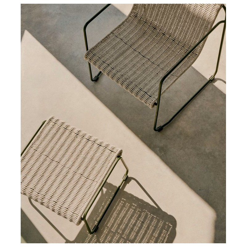 Repose-pieds de jardin Rina en acier galvanisé vert et corde Gris écru VeryForma.
