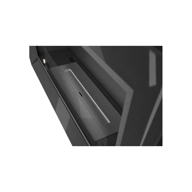 Le feu procure un effet visuel extraordinaire, qui grâce à sa forme géométrique s'installe dans tous les intérieurs avec son système de suspension mural.