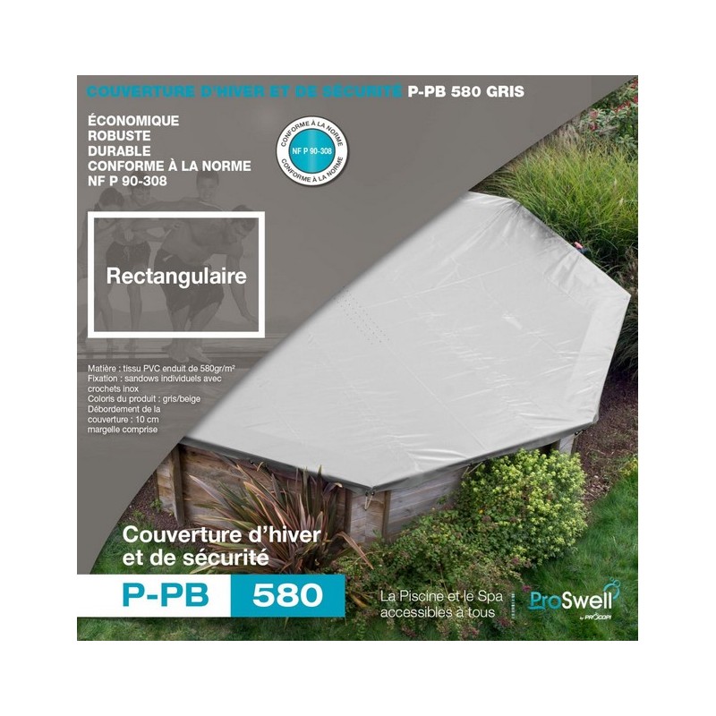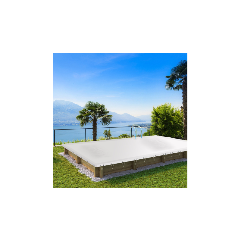 Couverture de protection et hivernage P-PB 580 pour piscine bois rectangle en 6x3 m maximum, margelle incluse.