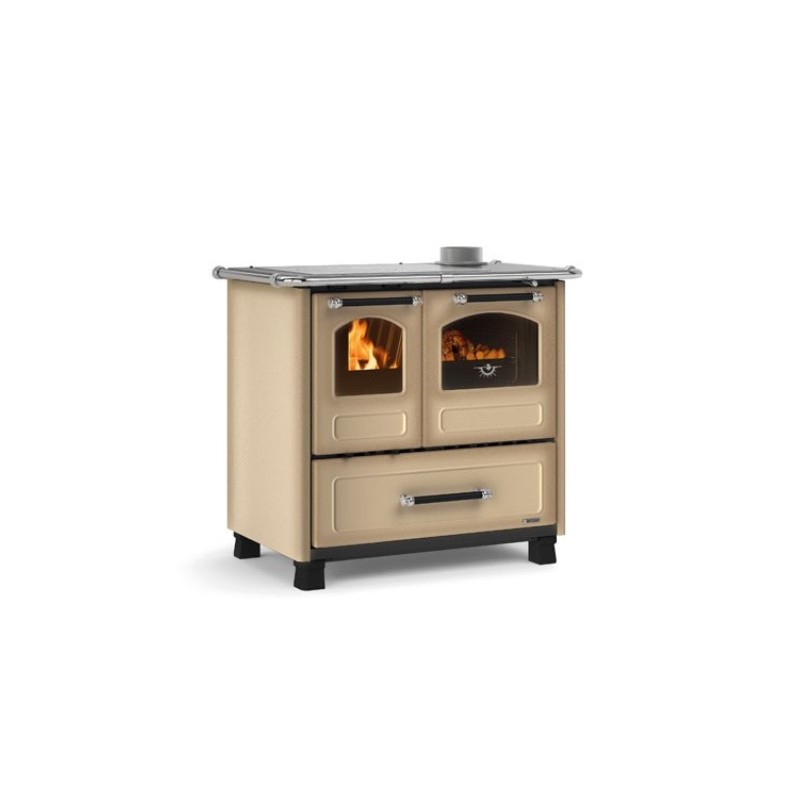 La cuisinière a bois Family 4.5 avec four de 41 litres de la marque La Nordica est en fonte émaillée. D'une puissance nominale de 9kW ce qui permet de chauffer environ 215m3. La cuisinière à bois en fonte utilise des bûches de bois jusqu'à 25 cm.