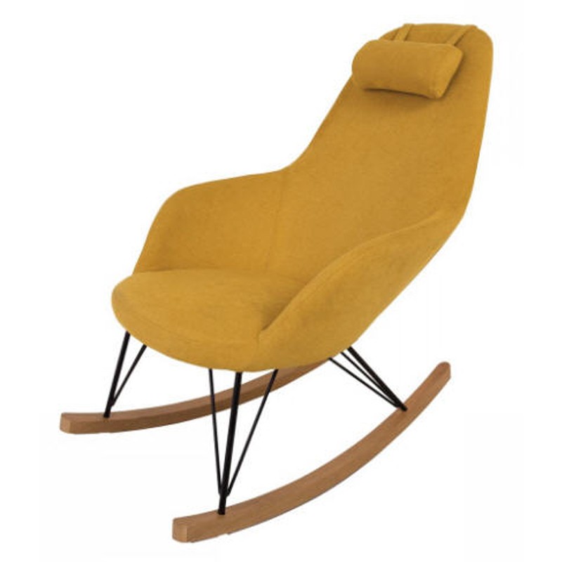 Rocking-chair Hygge en Tissu Jaune et Bois Eva KosyForm