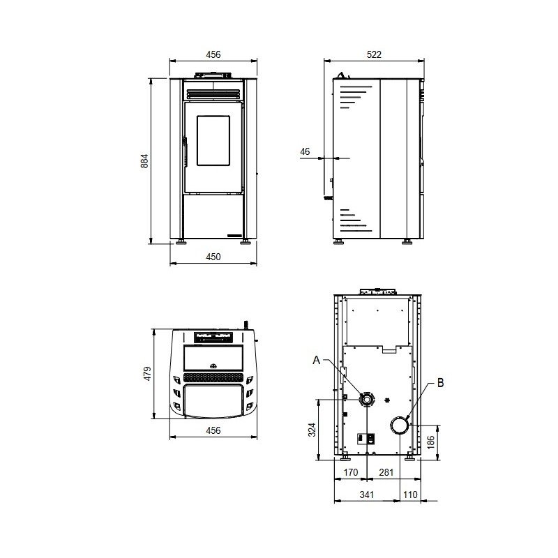 Poêle à granulés étroit ventilé...