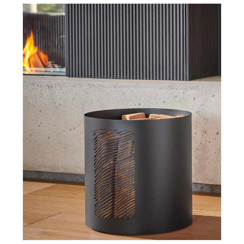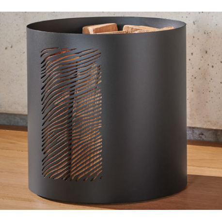Sa couleur pierre des sables intensifie cette invitation au voyage Pratique avec ses roulettes intégrées pour déplacer aisément le rangement à bois près de l'appareil. Esthétique par son jeu de transparence créé par les fines découpes de l'acier.