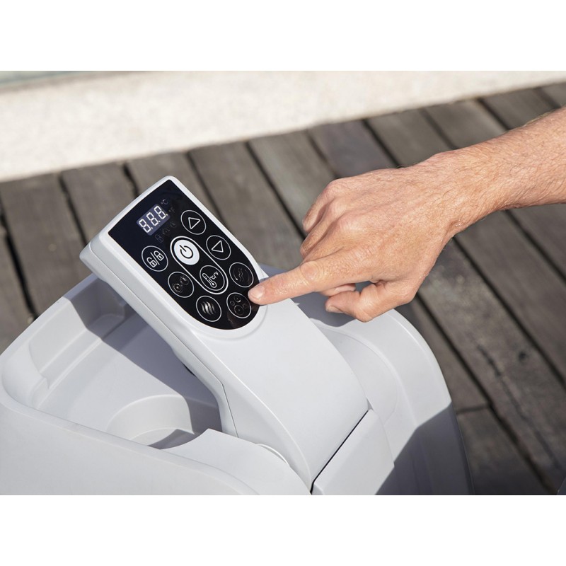 Notre pompe tactile de filtration allie design et fonctionnalité. Elle gonfle le spa, chauffe l’eau jusqu’à 40 ° C, effectue une filtration pour maintenir une propreté maximale de l’eau et active le système de massage.