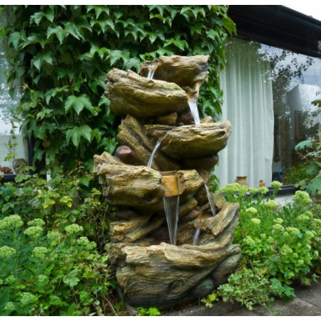 La fontaine Sedonas Ubbink majestueuse cascade imitant la forme naturelle de vieux troncs d' arbre. Les cascades d’eau se forment au niveau des vasques et sont éclairées par des LED.