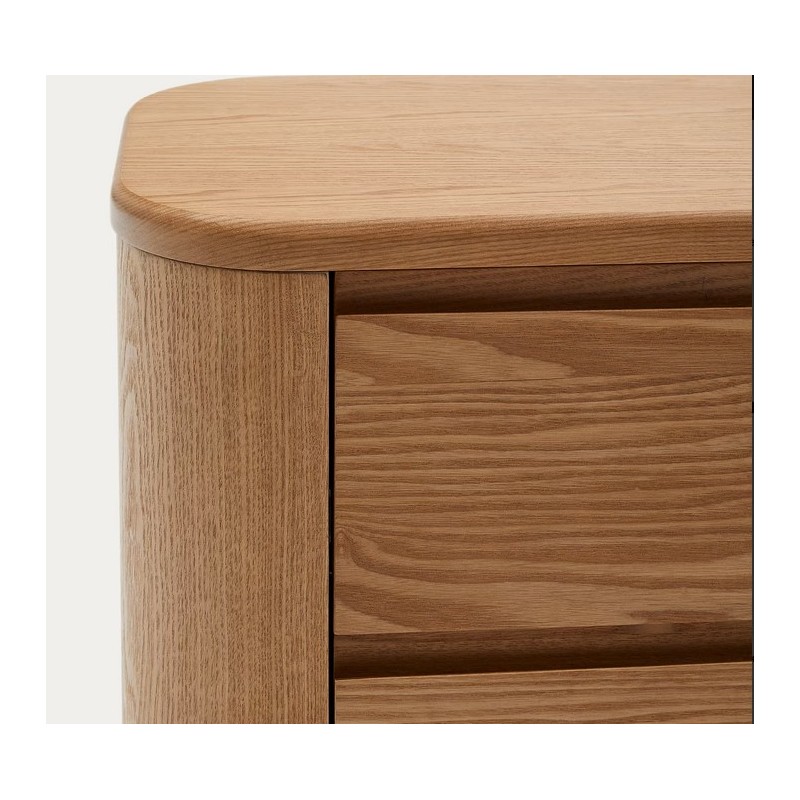 Table de nuit Saly en contreplaqué de frêne FSC et pieds en massif de frêne avec finition naturelle et tiroirs.