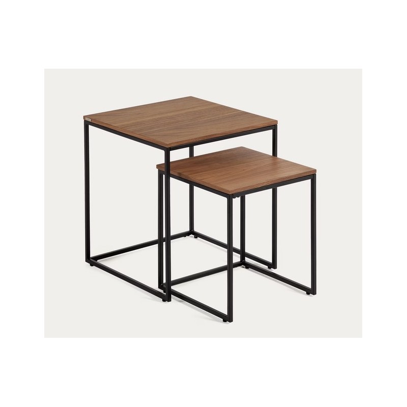Ensemble 2 tables d'appoint gigognes Ana en placage de bois noyer et structure en métal noir 45 cm.