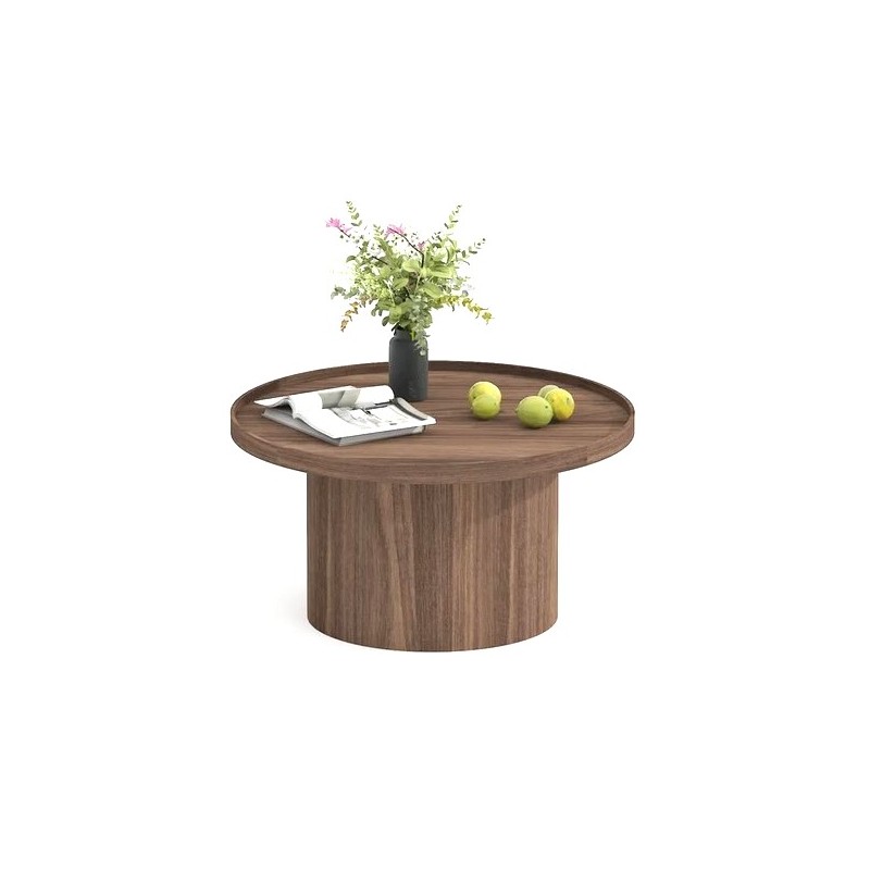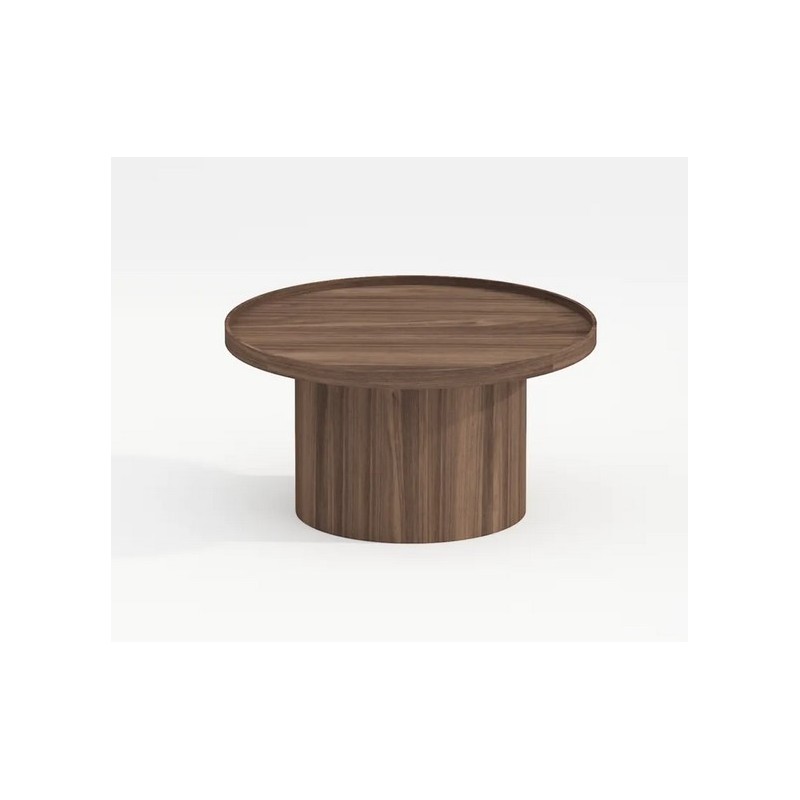 Table Basse Ronde Lasma placage en bois de noyer finition naturelle 80x80x35cm.