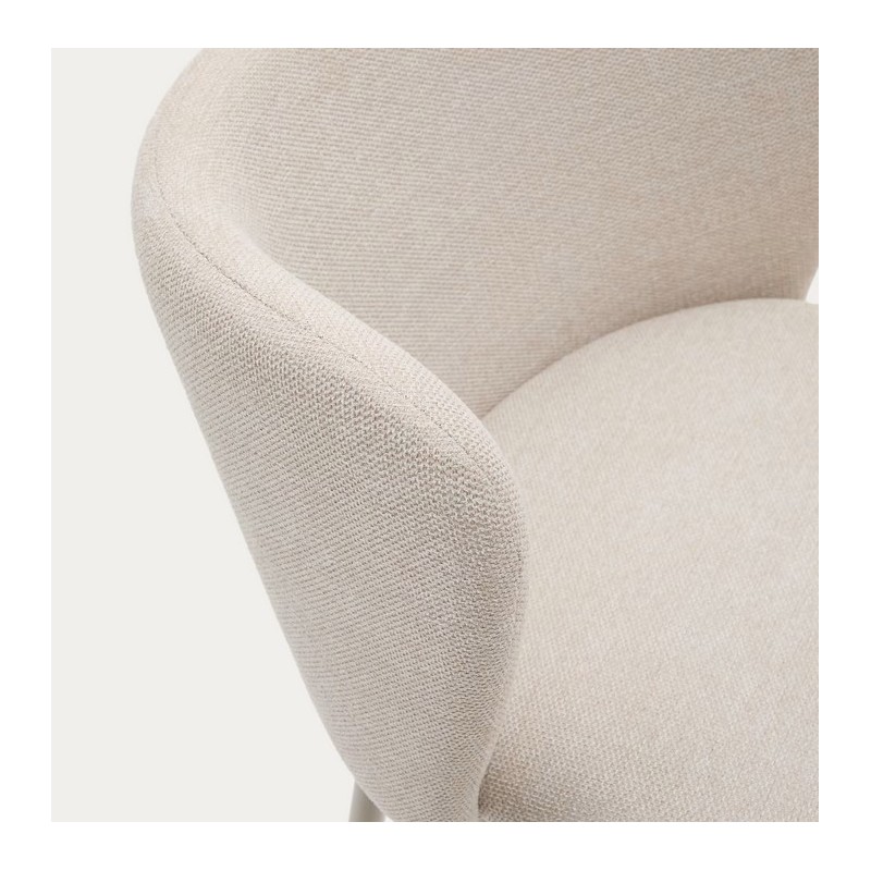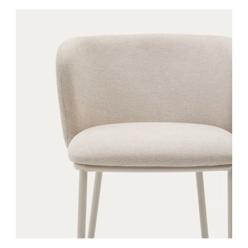 Les Tabourets de Bar hauts Elia en tissus chenille beige et pieds en acier beige. Convient pour l'intérieur.