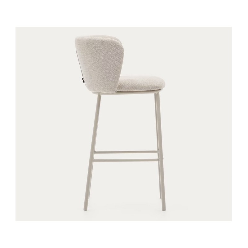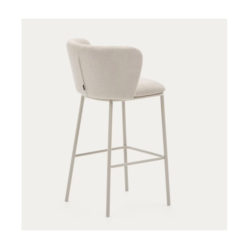 Les Tabourets de Bar hauts Elia en tissus chenille beige et pieds en acier beige. Convient pour l'intérieur. Hauteur de l’assise 75 cm pour Bar. Convient pour l'intérieur.