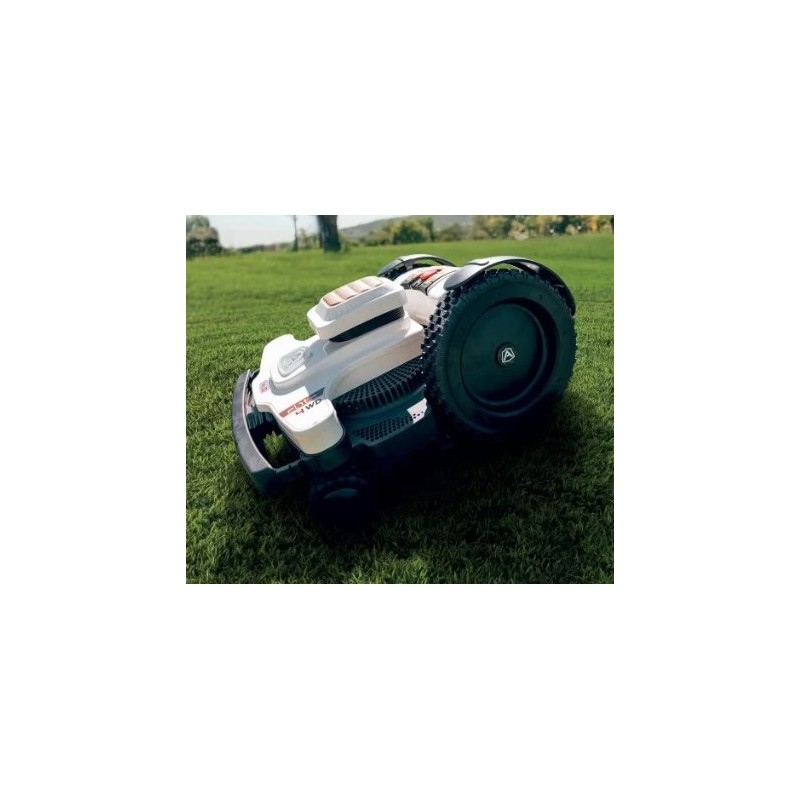 Le robot intègre tous les avantages de la ligne 4.0 : flexibilité, puissance, coupe uniforme et précise même sur des surfaces très irrégulières ; il a la capacité de gérer même les pelouses très escarpées, avec de l'herbe sèche ou humide, grâce aux 4 roues motrices combinées aux puissantes batteries lithium-ion.
