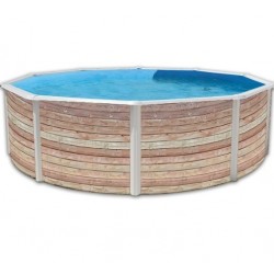 Piscina fuori terra TOI Etnica round 460xH120 con kit completo.Piscina fuori terra TOI Round Etnica alta 1,20 m decoro in legno con scala, Skimmer, Liner, profili, filtro a sabbia.