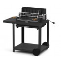 Le Marquier Mendy Barbecue in acciaio nero con carrello e girarrosto.
