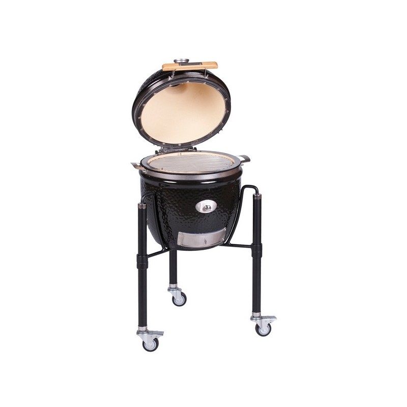 Le Kamado Junior Pro 2.0 Monolith è un barbecue compatto per 4-6 persone e ti offre il gusto puro di un fuoco a carbone. E' dotato di un carrello a 3 ruote e di un piano di cottura di 33 cm.