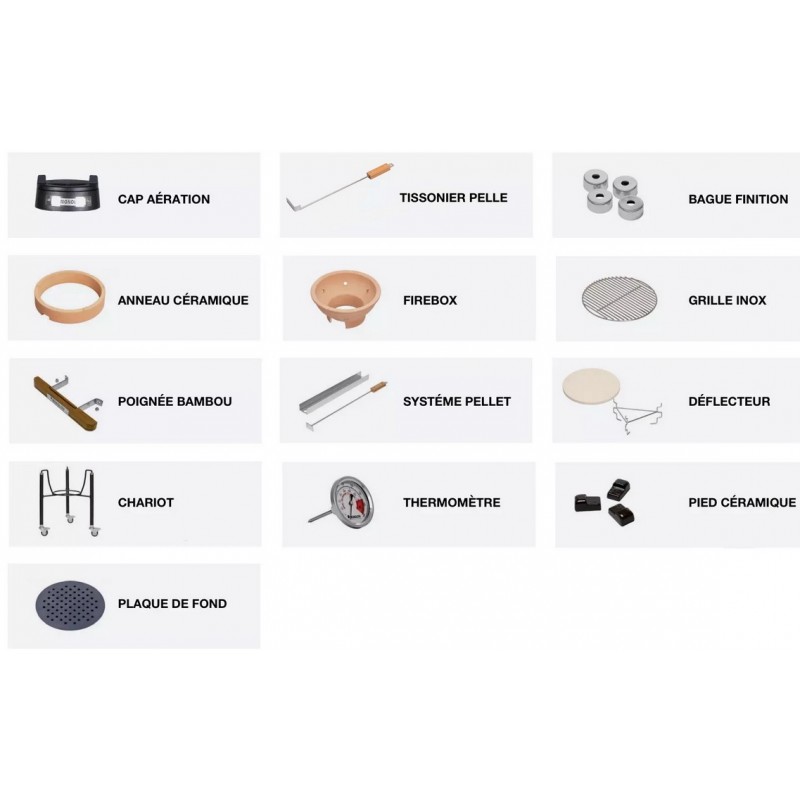 Molte opzioni possibili così come altri accessori permette di aumentare le possibilità: pizze, girarrosto, wok, termoregolatore, plancha ecc... su richiesta.