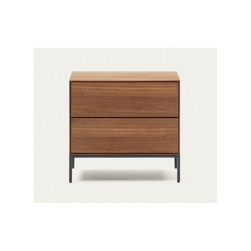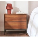 Comodino Rana con impiallacciatura in legno di noce con finitura moderna e 2 cassetti.