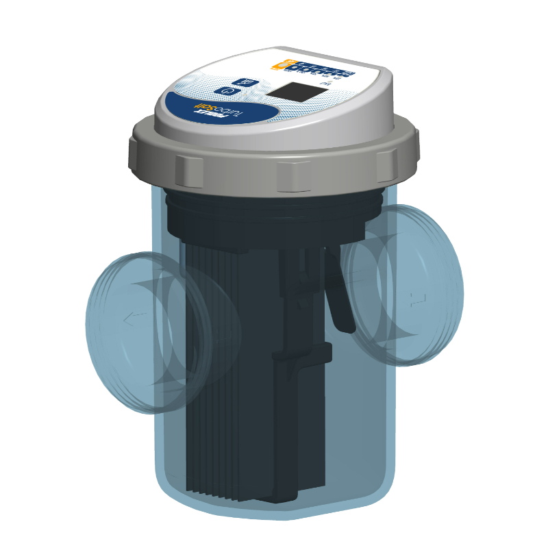 Grazie al suo supporto a parete o a pavimento, questo elettrolizzatore a sale si adatta a tutti i tipi di filtrazione e le sue dimensioni ultracompatte ne consentono l'installazione nei locali tecnici più ristretti.