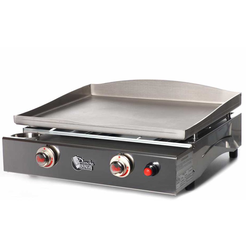 Plancha gas Tonio Lagoa 2 luci piastra in acciaio inox e scatola.
