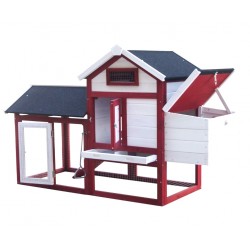 Il grazioso pollaio a due corpi in legno tinto offre tutto il comfort necessario per 5 o 8 galline.