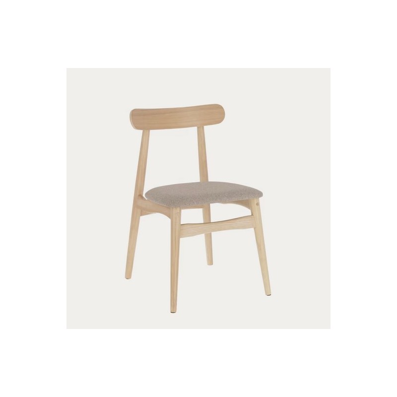 Per il tuo pasto la sedia May in legno massello naturale con seduta in tessuto grigio chiaro VeryForma è adatto per la sala da pranzo o la cucina.