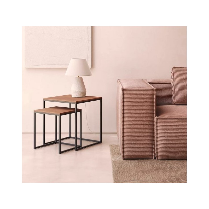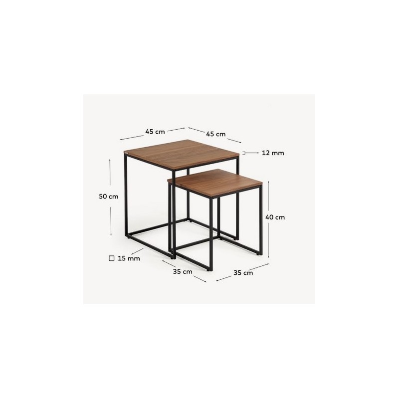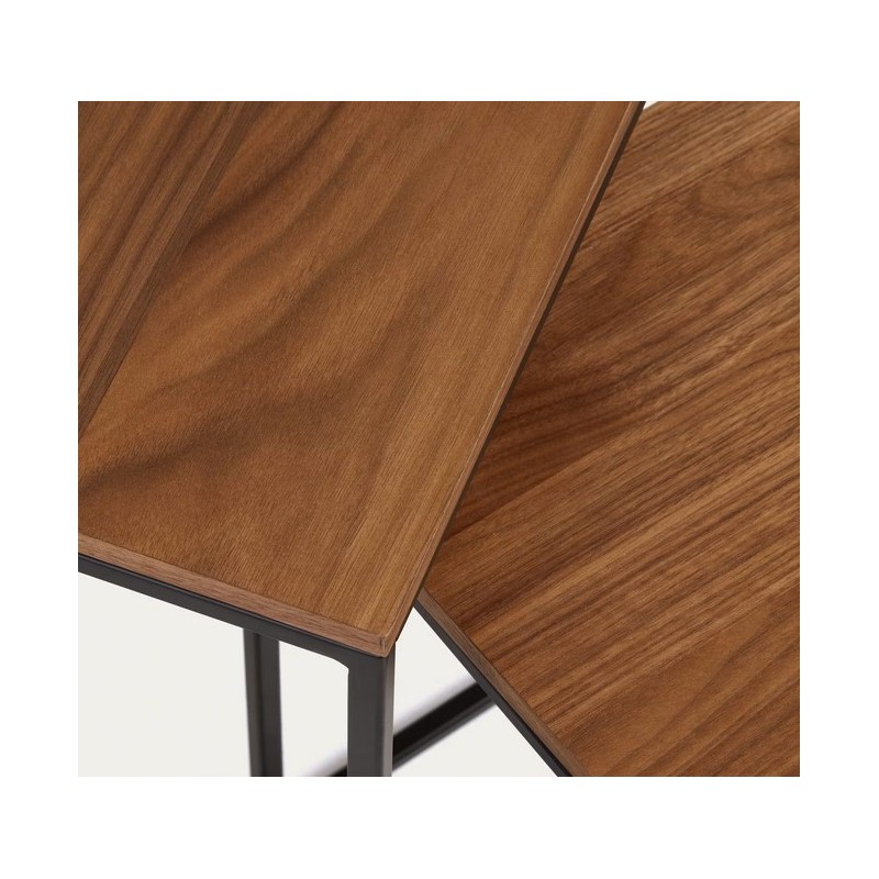 Set di 2 tavolini estraibili Ana in legno di noce impiallacciato e struttura in metallo nero 45 cm. Adatto per uso interno.