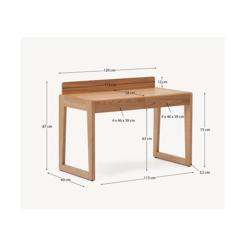 La scrivania da tavolo Andu è realizzata in frassino, con un design salvaspazio che ti offre molto spazio nel tuo ufficio.