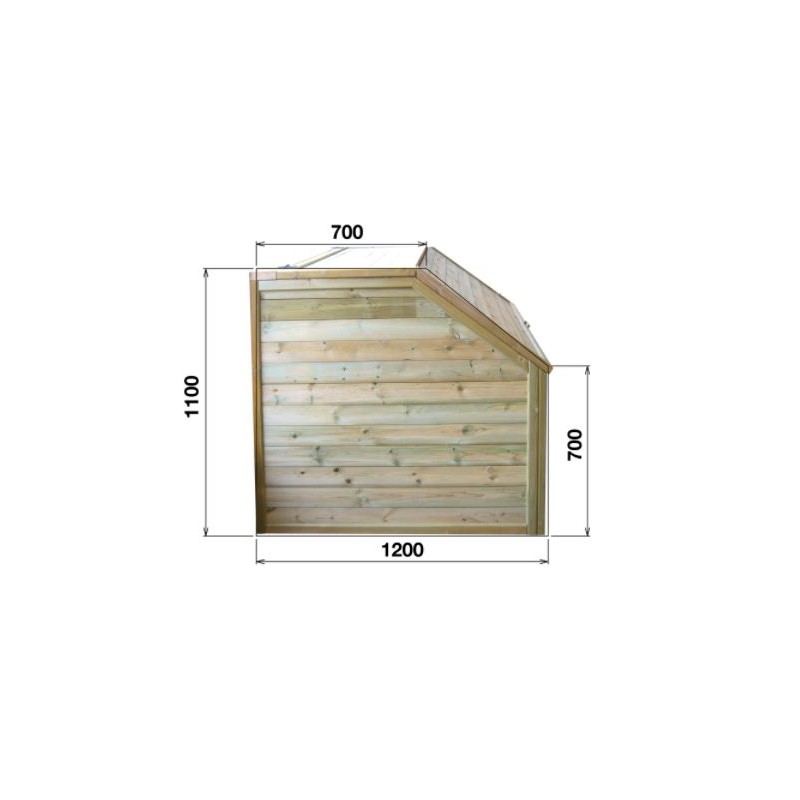 A sala técnica deve ser colocada em um suporte plano (não tem base). Também deve ser anexado a uma parede (não tem fundo). A pegada tem 1,75 m de altura quando a tampa está em posição aberta