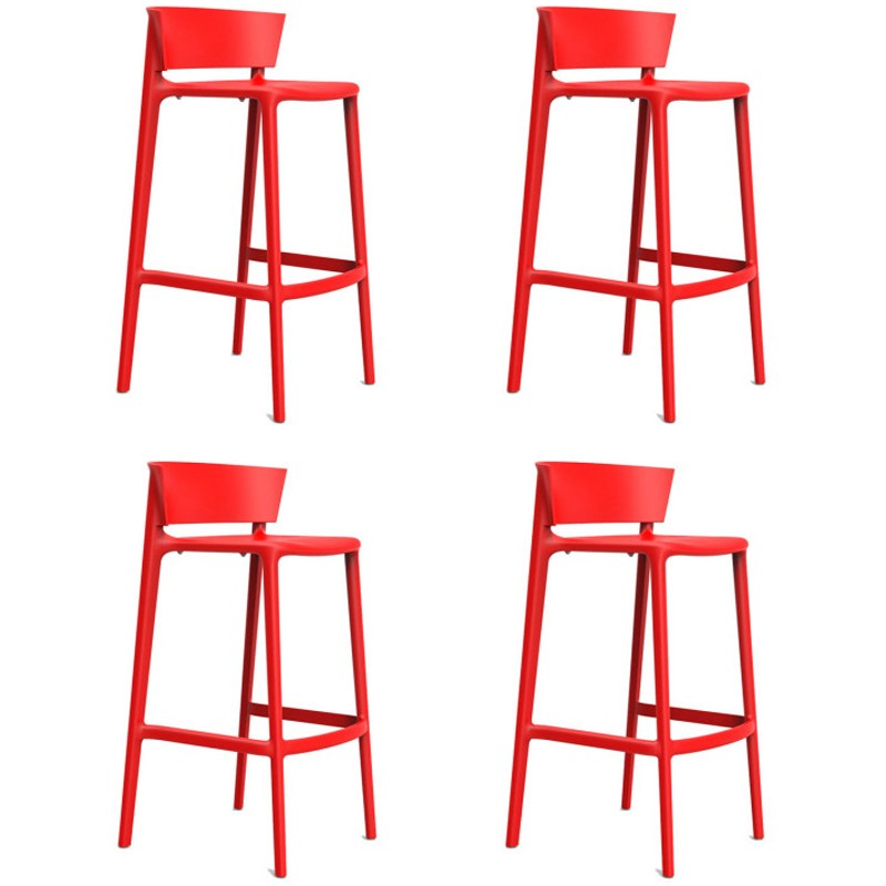 Conjunto de 4 bancos de bar Vondom Africa altura de assento 74,5 cm vermelho.