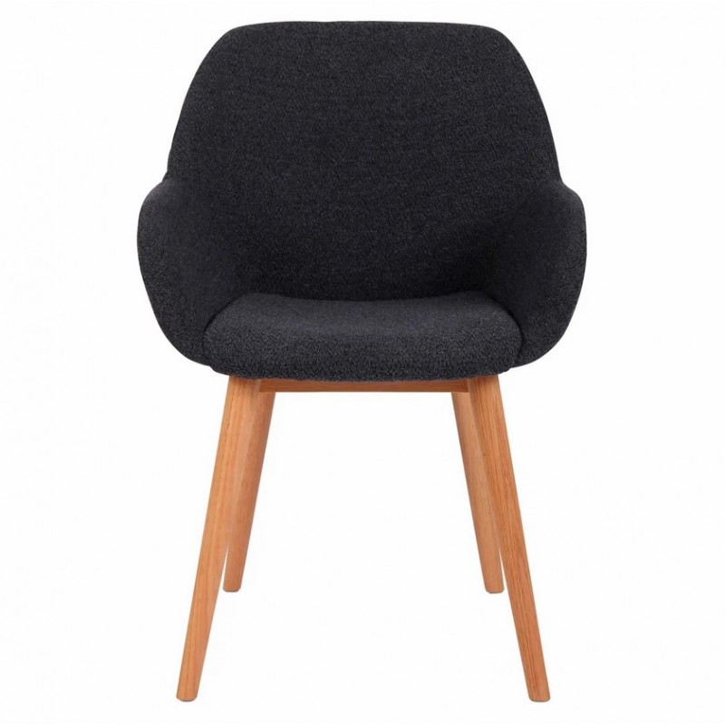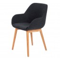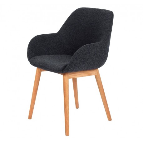 Optamos por esta poltrona de jantar Tea em tecido VeryForma azul marinho, o seu assento e base em carvalho maciço oferecem conforto ao seu interior.