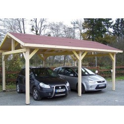 O Badajoz Carport em madeira bruta laminada autoportante natural para estacionar o seu carro ou motocicleta. Protege do tempo e do sol com um cobertor de sua escolha.