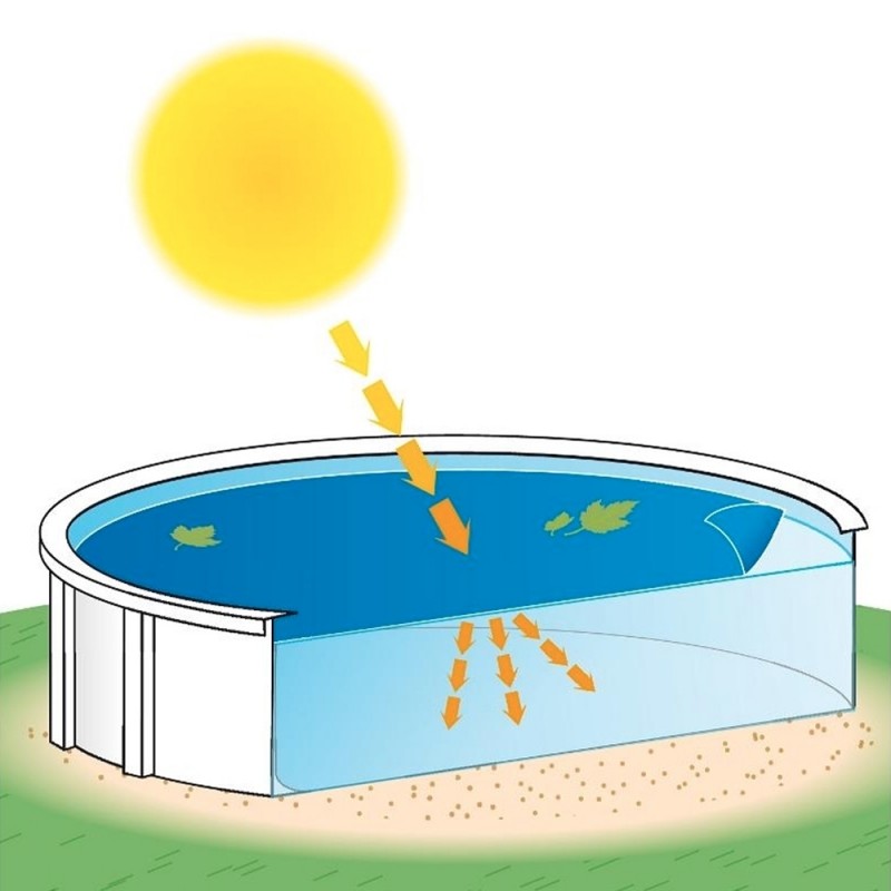 A cobertura de bolhas flutua na água da piscina, permitindo a passagem dos raios solares, o que aquece a água, por um lado, e garante a retenção de calor, por outro.