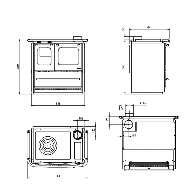 O fogão a lenha Sovrana Easy Evo com forno de 41 litros da marca La Nordica é feito de ferro fundido esmaltado preto. Com uma potência nominal de 7,2kW que pode aquecer cerca de 215m3. O fogão a lenha de ferro fundido utiliza toras de madeira de até 30 cm.
