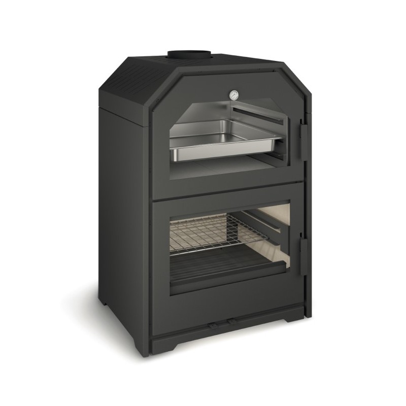 Equipado com uma câmara dupla, para circulação de ar de convecção e entrada de calor no forno.