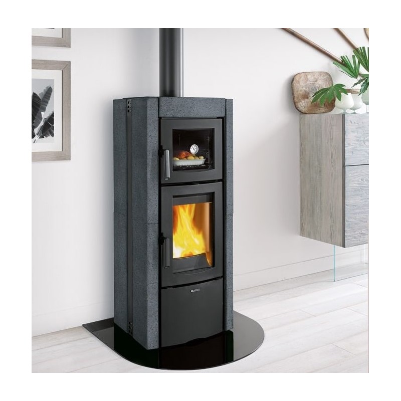 Fogão a lenha com forno Nordica Extraflame Ester Evo 9.5kW-N em Pedra Natural.