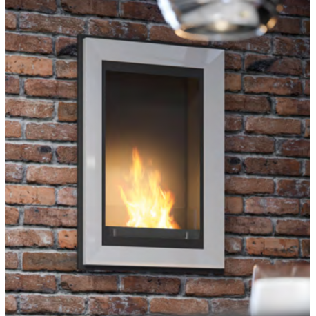 A lareira a bioetanol Moldura com 1 painel de vidro é para ser pendurado, mas também pode ser embutido em uma parede.