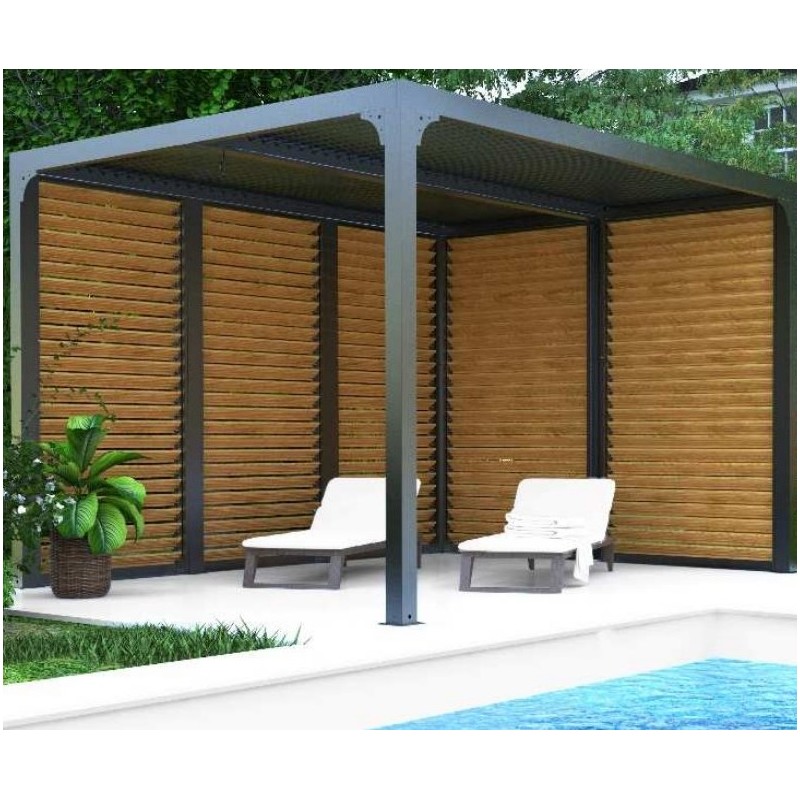 Pérgola bioclimática Habrita alumínio 2 Lados Ventelles imitação de madeira 10,80 m2.