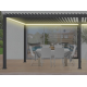 Seu belo acabamento cinza carvão permitirá que você crie um espaço de convívio adicional fora de sua casa para apreciá-lo durante a maior parte do ano. Graças às persianas ajustáveis, a pérgola bioclimática dá-lhe a oportunidade de brincar com a intensidade do sol e desfrutar do seu espaço exterior a qualquer hora do dia e em qualquer estação graças ao controlo remoto fornecido.