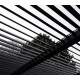 O teto do arbour é composto por ripas de alumínio largas e planas ajustáveis. Eles abrem e fecham manualmente e simultaneamente com uma manivela.