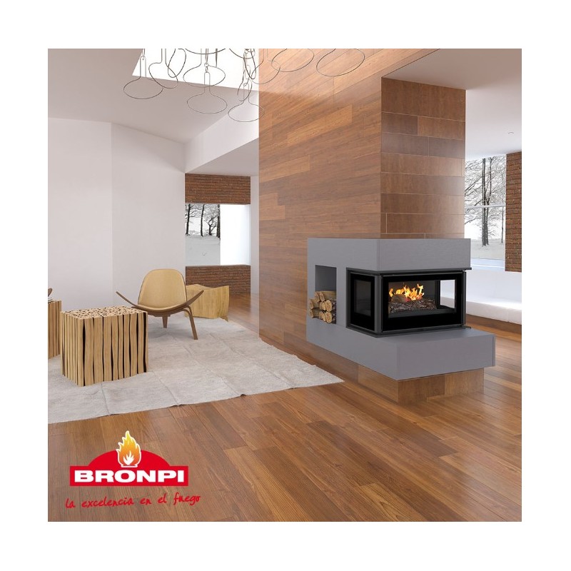 Inserção de madeira 3 faces envidraçadas Bronpi Paris 90-3-C Vision 14kW com turbina.