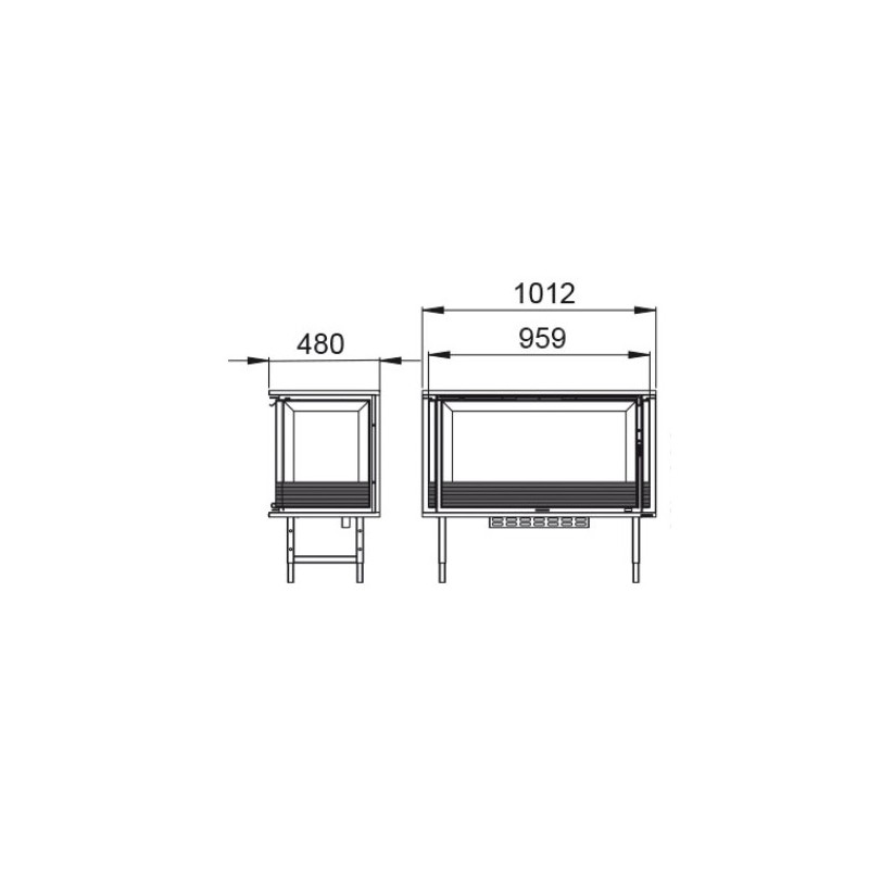 Volume aquecido: 350m3- Eficiência 77% - Porta e grade de cinzeiro de ferro fundido - Lareira de ferro fundido - Sistema de combustão dupla e vidro limpo - 2 saídas de ar quente dutáveis.