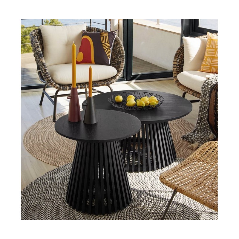 Mesa de centro auxiliar Jet feito de madeira Mindi, acabamento preto.