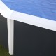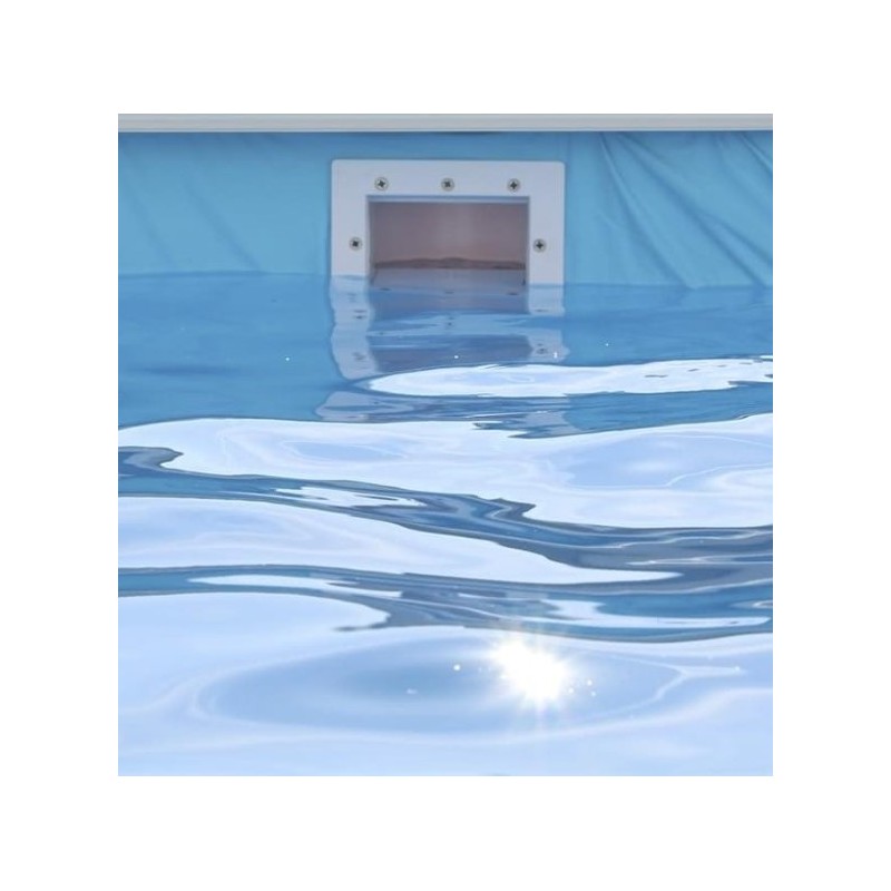 Piscina oval de 132 cm de altura sem contrafortes. A piscina se encaixa perfeitamente no seu jardim. Estrutura metálica com perfis metálicos e escumadeira completa.