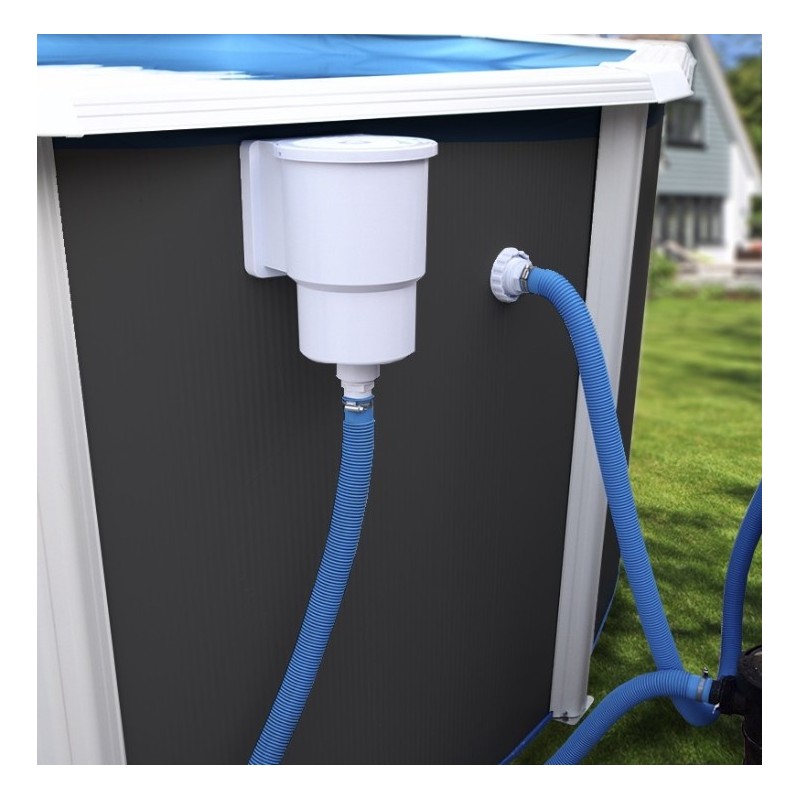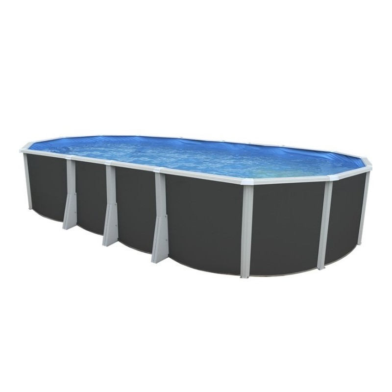 Piscina acima do solo oval OTEL Antracite 915x457x132 com seu kit completo pronto para nadar.