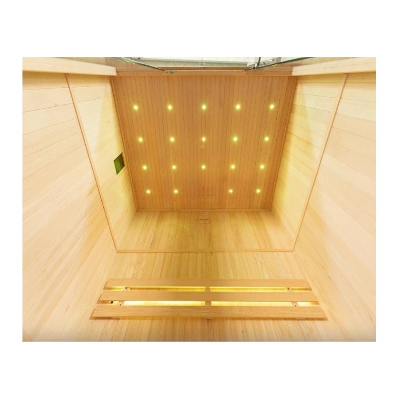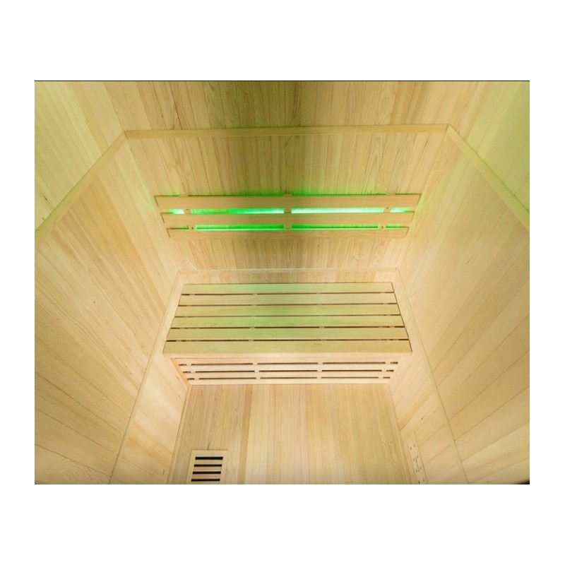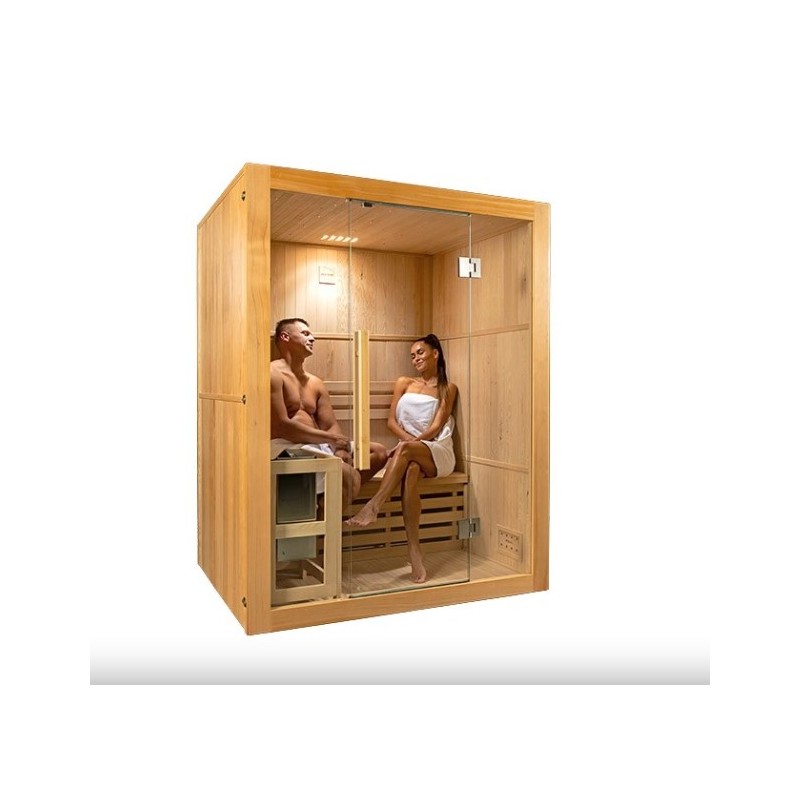 Sauna a vapor interior nórdica tradicional de 2 lugares feita de madeira de abeto canadiana.