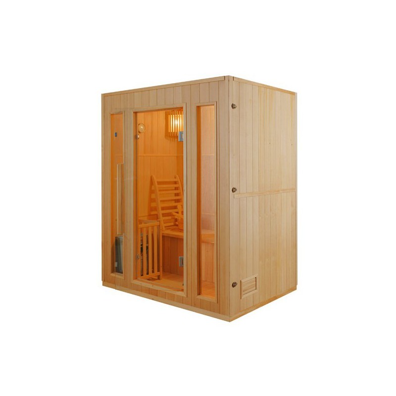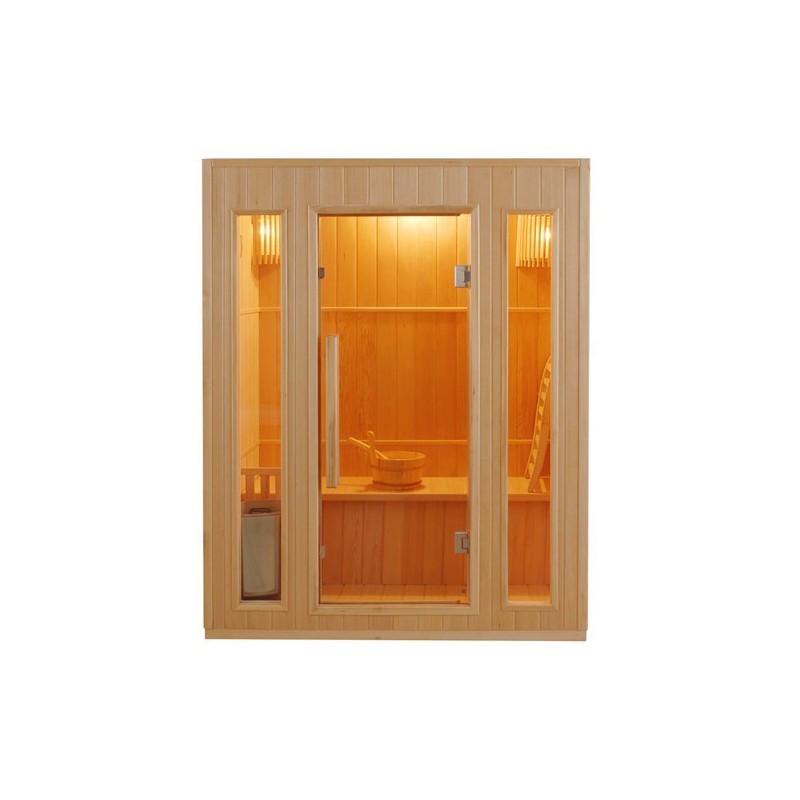 Sauna tradicional projetado para acomodar 3 pessoas.