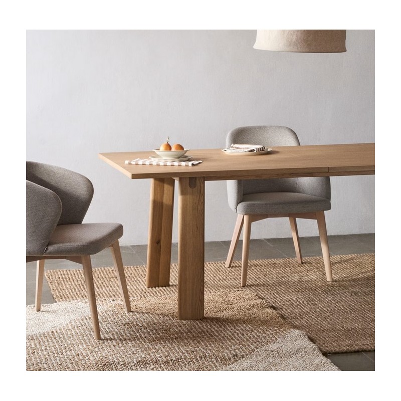 - Tampo em folheado e pernas em madeira maciça de carvalho com um leve acabamento natural.
